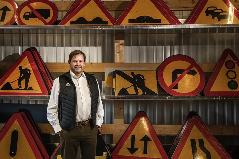 – Vi måste vara på tårna när det gäller reglerna. Vi gör trafikanordningsplaner, typ byggritningar för stora vägarbeten. Våra kunder, som ofta är de stora entreprenörsföretagen och även kommunala energibolag, ska veta att vi har full koll på vad som gäller.