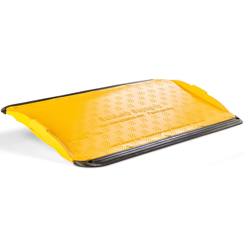 Få ner hastigheten och säkerställ lägre hastighet med tillfälliga gummifarthinder, kabelöverkörningsskydd, kabelbryggor, tröskelramp.
