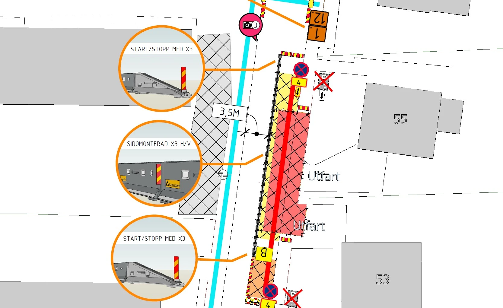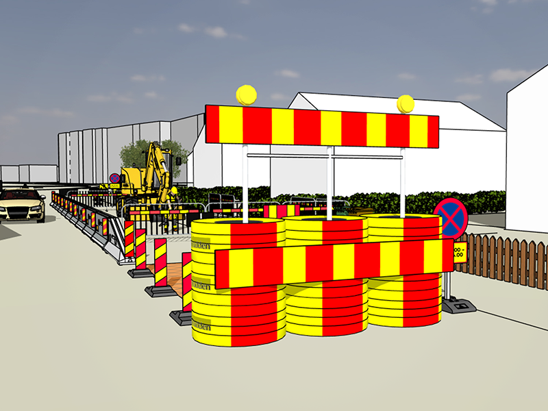 TA-planen i vårt exempel innefattar ingen byggställning eller skylift men en fråga vi ofta får är: "Vad gäller när man etablerar en byggställning/skylift (personkorgsarbeten) intill trafik"?